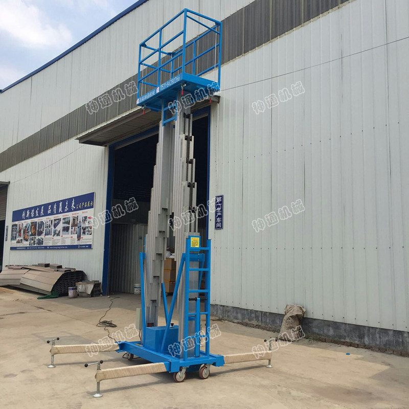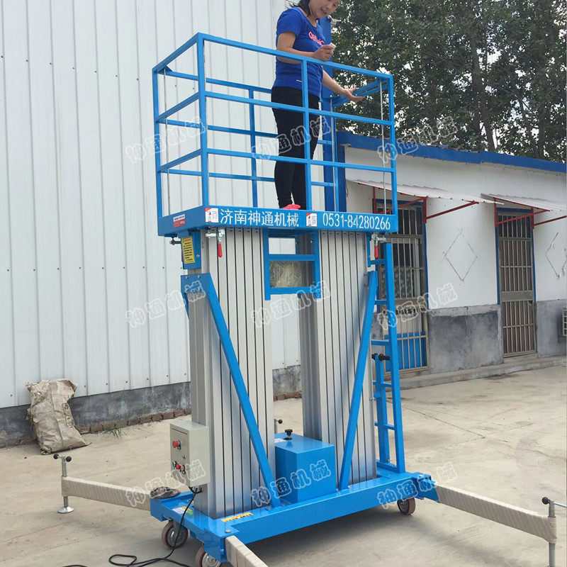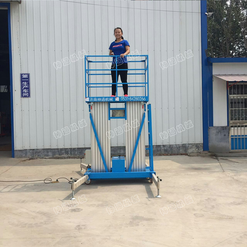 產(chǎn)品介紹:鋁合金電動(dòng)升降機,采用高強度優(yōu)質(zhì)鋁合金材料,具有造型美觀(guān)、體積小、重量輕、運轉靈活,推行方便。升降平穩、安全可靠等優(yōu)點(diǎn)。SJYL三柱鋁合金液壓升降平臺能穿越一般門(mén)廳,可隨意進(jìn)出電梯,能在極小的空間內發(fā)揮最高的舉升能力。使單人高空作業(yè)變得輕而易舉。且耗電少、無(wú)污染、工作時(shí)不傷地面,可用于貼墻作業(yè)及探出作業(yè)。鋁合金液壓升降平臺分為:?jiǎn)沃?、雙柱、三柱和四柱等。